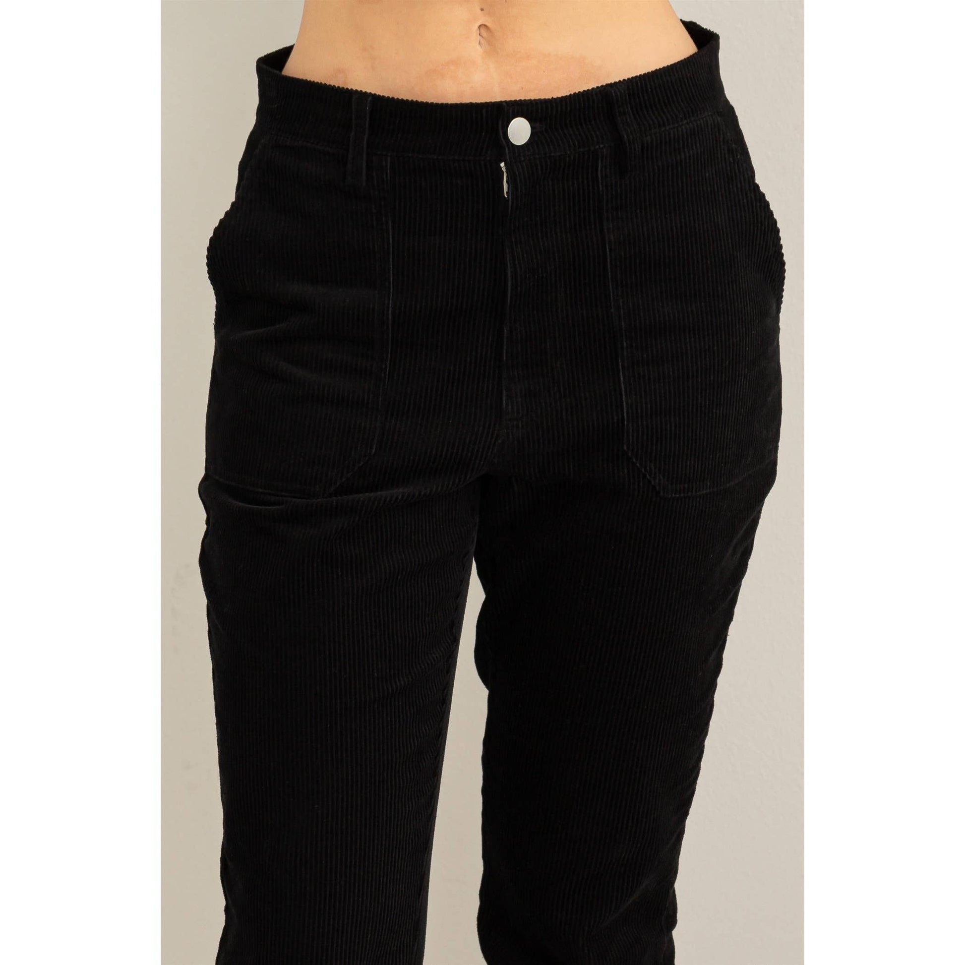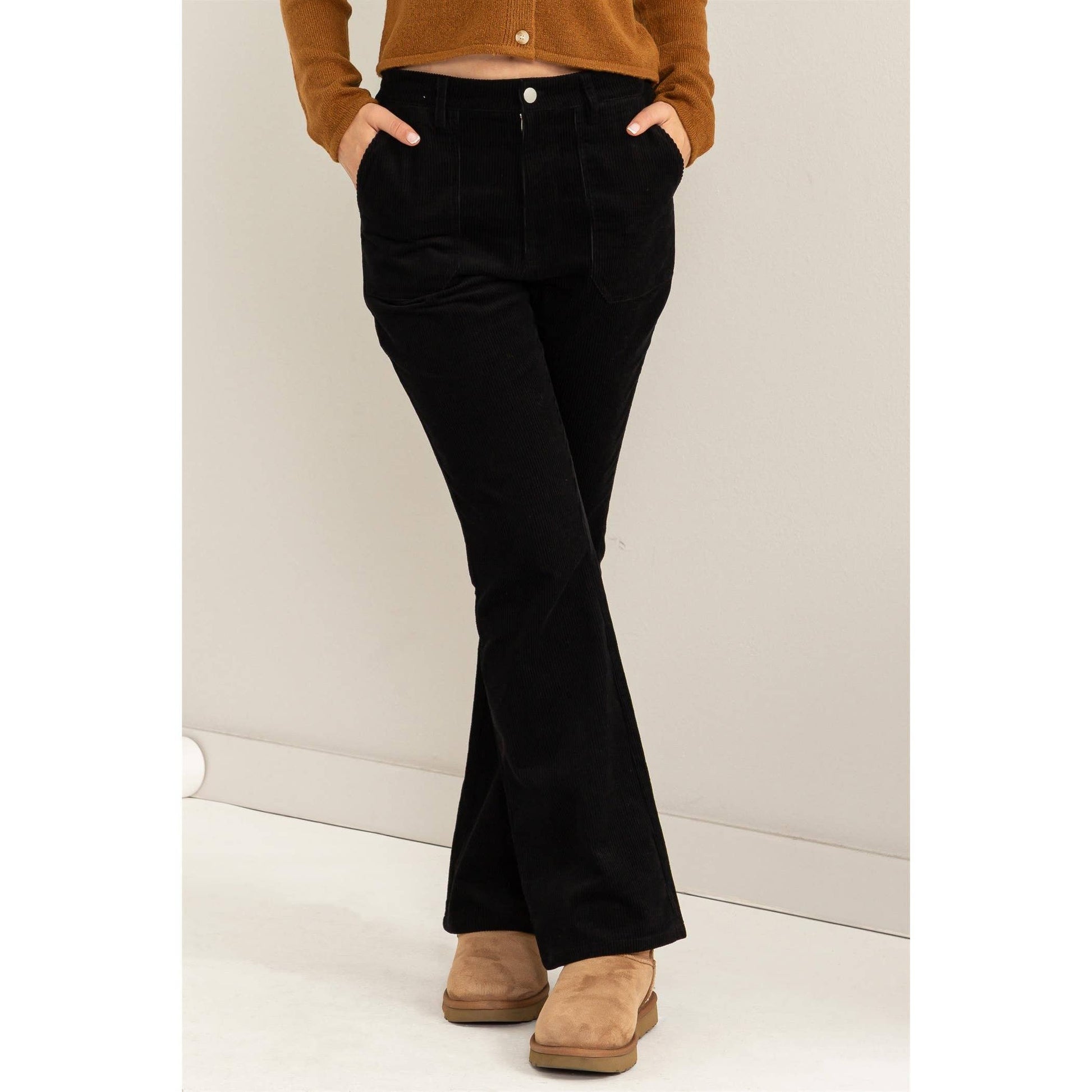These corduroy pants offer a unique mix of retro appeal and contemporary style. The fabric is soft and textured, giving a look that's both classic and current. A fitted waistline highlights your curves, while the flared hem adds a touch of flirty flair.